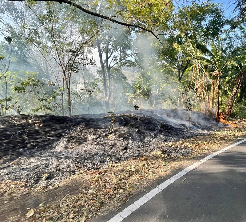 "Ada beberapa kemungkinan, mungkin karena faktor cuaca musim kemarau hingga alang-alang atau rumput liar kering. Ketika terjadi gesekan atau ada orang buat puntung rokok, memicu terjadinya api," jelasnya.