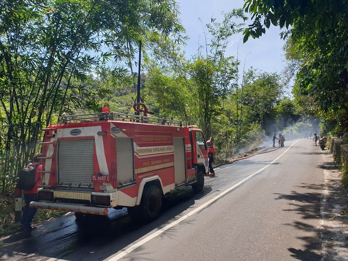 Pemerintah daerah mengerahkan dua unit mobil pemadam kebakaran milik BPBD serta Dinas Satpol dan Damkar untuk memadamkan api.