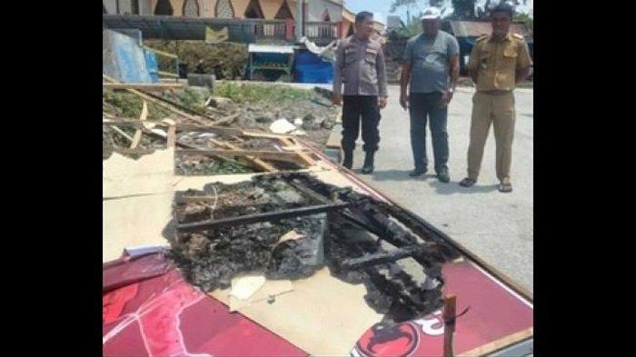 Seorang anggota Polri yang bertugas di salah satu polsek di Kabupaten Buton Tengah, Sulawesi Tenggara, inisial Aipda AL, nekat membakar baliho bakal calon presiden Ganjar Pranowo di Desa Lanto, Kecamatan Mawasangka, Selasa (5/9/2023) dini hari. (Sumber: Kompas.com)