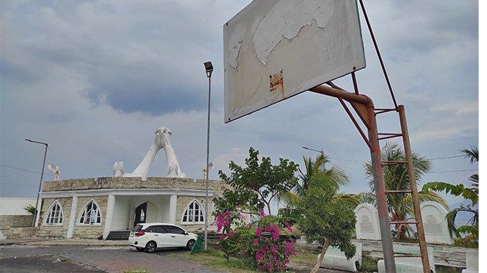 Beberapa bagian bangunan yang jadi pondasi simbol Manado Kota Doa rusak.