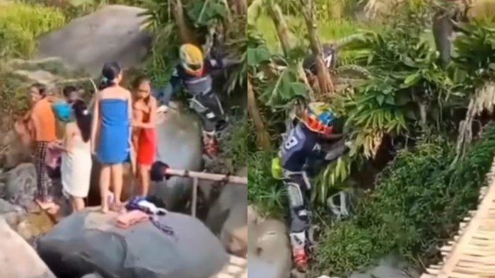 Viral Momen Salting Pengendara Motor Cross Jatuh ke Sungai saat Sejumlah Wanita Asik Mandi dan Nyuci