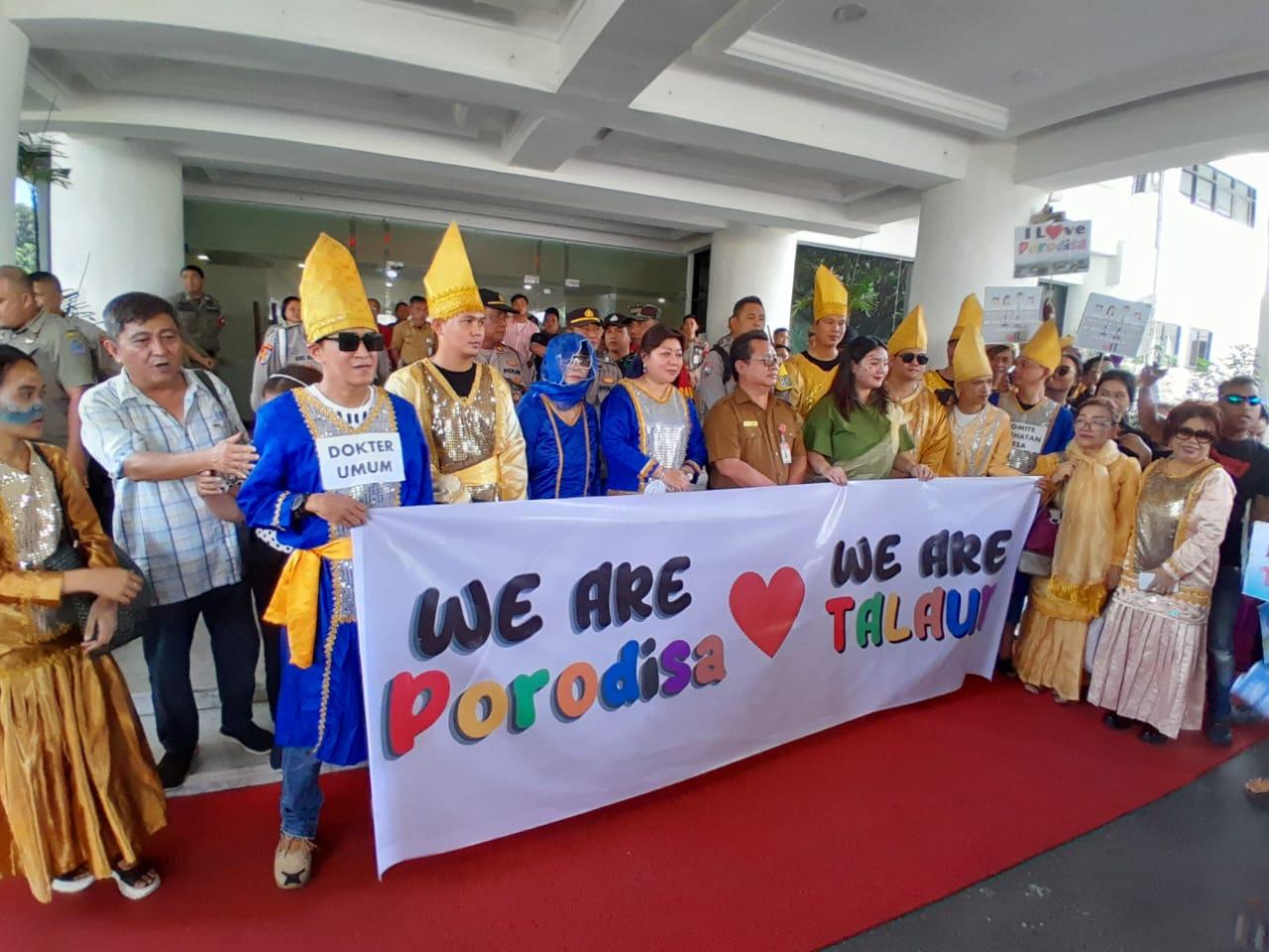 Dipimpin Hillary Lasut, mereka menyuarakan aspirasi masyarakat tentang APBD Perubahan Pemkab Talaud yang belum ditetapkan.