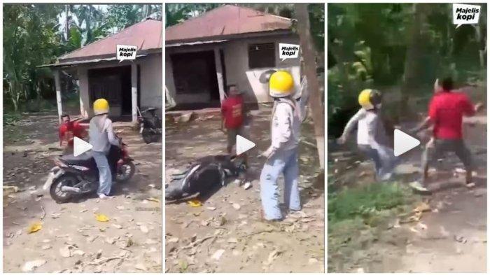 Aksi pria ngamuk dan kejar petugas wanita pakai parang itu terjadi di Desa Pematang Cengal, Tanjung Pura, Langkat, Sumatera Utara.