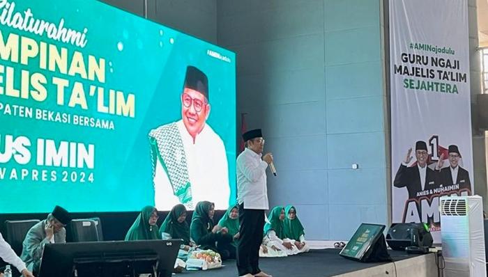 “Amin nomer berapa?' tanya Cak Imin dalam acara silaturahim Majelis Taklim se- Kabupaten Bekasi di Gedung Guru, Bekasi, Senin (18/12/2024).