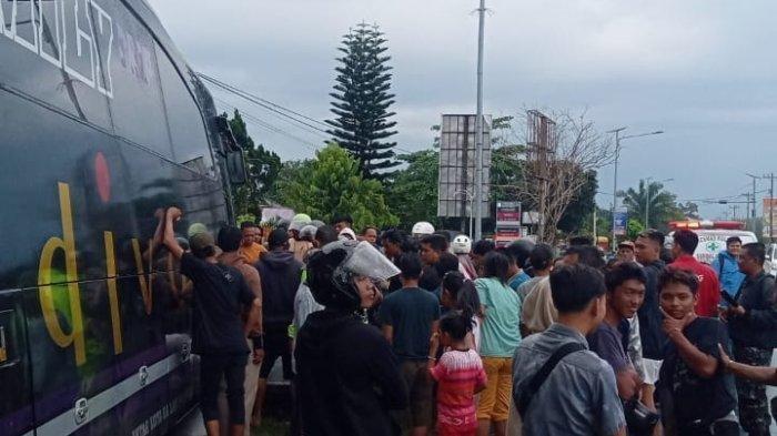 Seorang prajurit TNI-AD tewas usai dilindas Bus Eldivo jurusan Pematang Siantar-Medan, Senin (25/12/2023) sore.