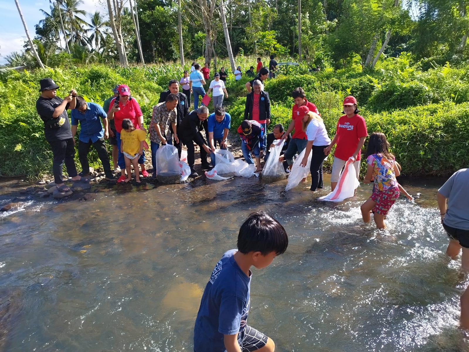 Restocking tersebut dilakukan di Sungai Tumikal, tepatnya di Desa Pontak, Kecamatan Ranoyapo, Kabupaten Minahasa Selatan (Minsel), Sulawesi Utara (Sulut), Jumat 12 Januari 2024.