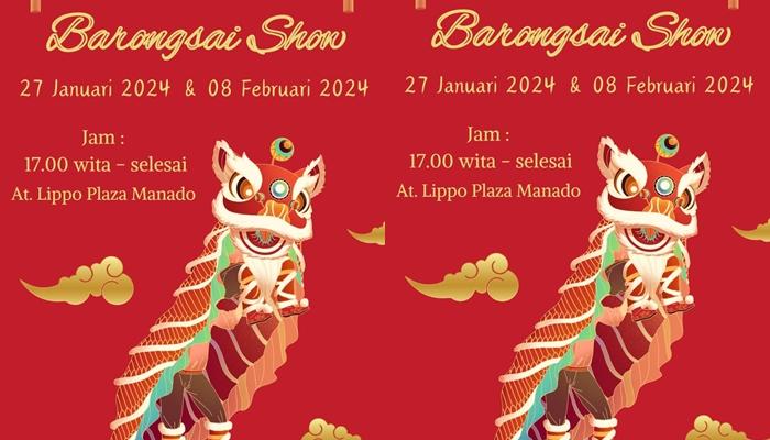 Pertunjukan barongsai akan digelar dua kali, yakni 27 Januari dan 8 Februari 2024 pukul 17.00 Wita.