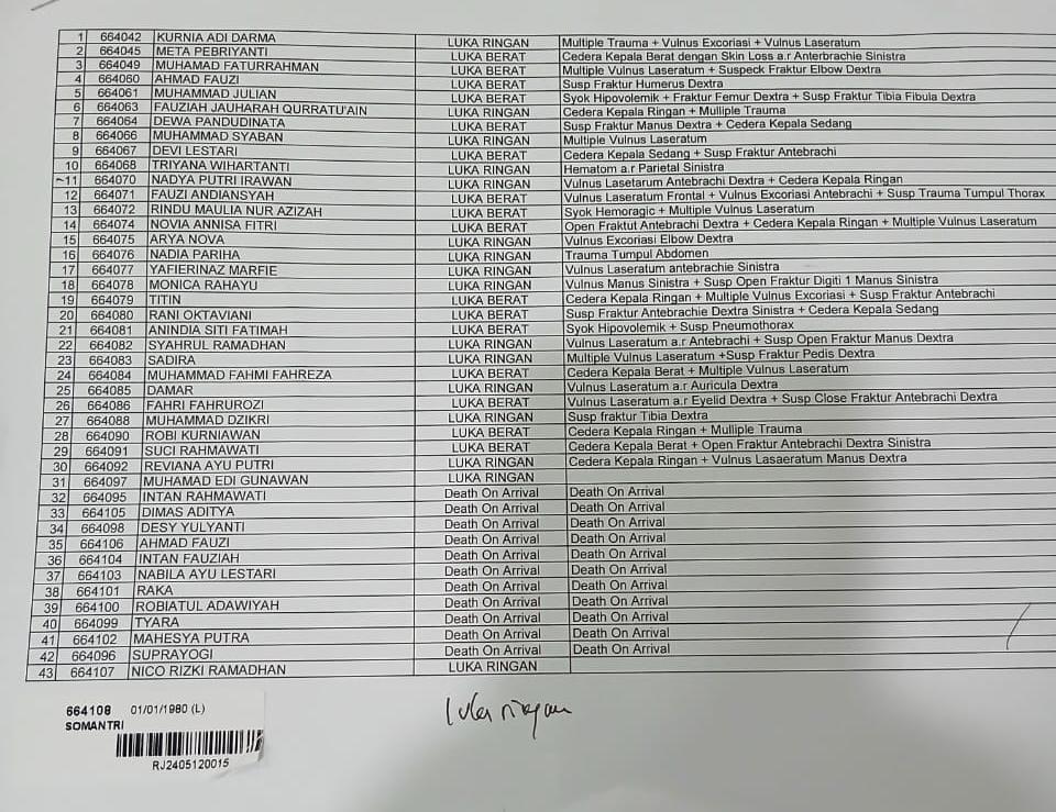 Berikut data sementara korban kecelakaan maut bus rombongan pelajar SMK Lingga Kencana Kota Depok yang terguling di Ciater Subang: