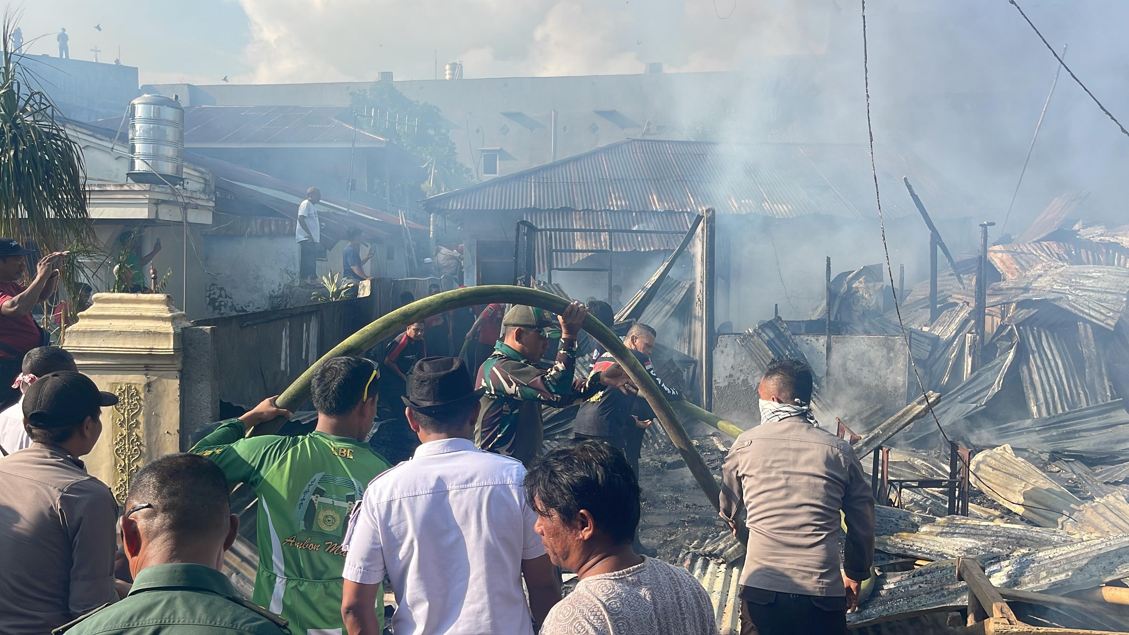 Manado, TRIBUNMANADO.CO.ID - Kerja malendong atau gotong royong, nampak dalam penangan peristiwa kebakaran Pasar Girian Bitung Sulawesi Utara (Sulut), Rabu (22/5/2024).