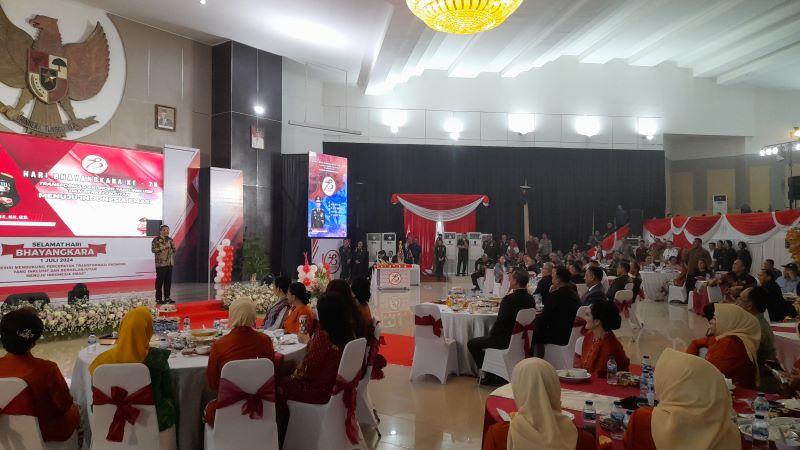 Peringatan ke-78 Hari Bhayangkara mengusung tema Polri Presisi Mendukung Percepatan Ekonomi yang Inklusif dan Berkelanjutan Menuju Indonesia Emas.