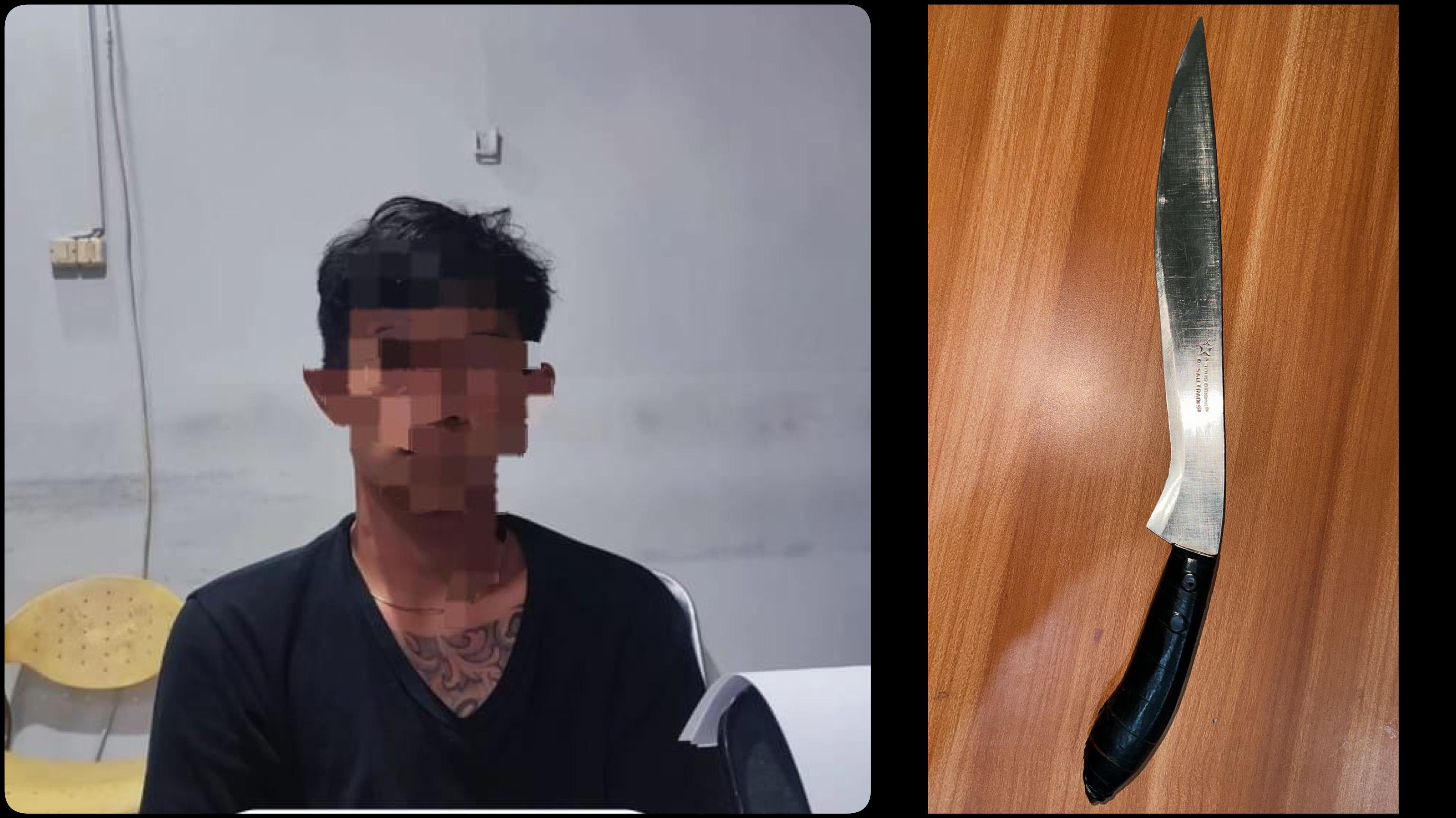 Lelaki pengangguran itu, ditangkap Patroli Presisi Polres Bitung, atas kepemilikan senjata tajam (sajam) jenis pisau badik.