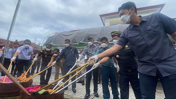 Pemusnahan tersebut dipimpin langsung Kepala Kejaksaan (Kajari) Bitung Sulut, Yadyn Palembang bersama Sekda Bitung Rudy Theno dan forkopimda, di halaman kantor.