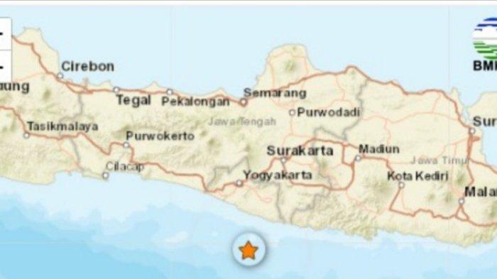 Lokasi gempa berada di titik koordinat Lok:8.47 LS,110.47 BT.