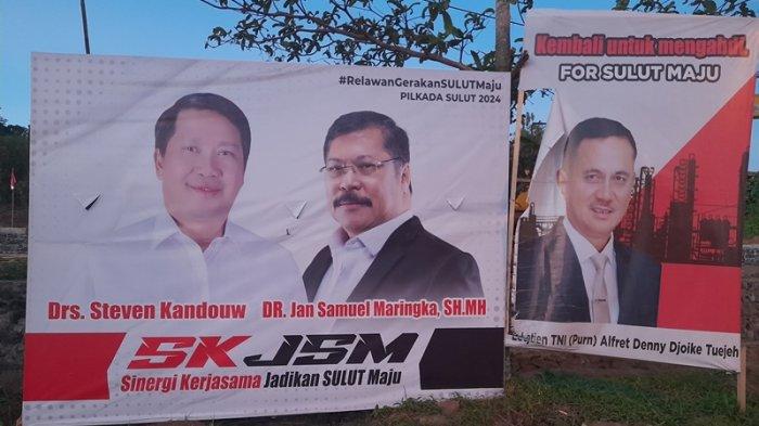 Baliho Maringka memuat foto Steven Kandouw bersama Jan Maringka.