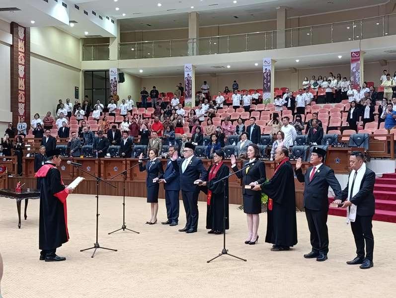 Pengambilan sumpah dan janji dipimpin Ketua Pengadilan Tinggi (PT) Manado, Asli Ginting dan disaksikan Gubernur Sulut, Olly Dondokambey dan anggota DPRD Sulut.