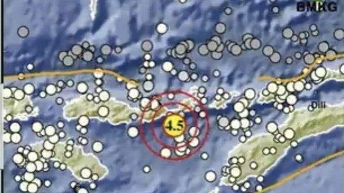 Berdasarkan data di Twitter@infoBMKG Gempa berkekuatan magnitudo 4.5 SR