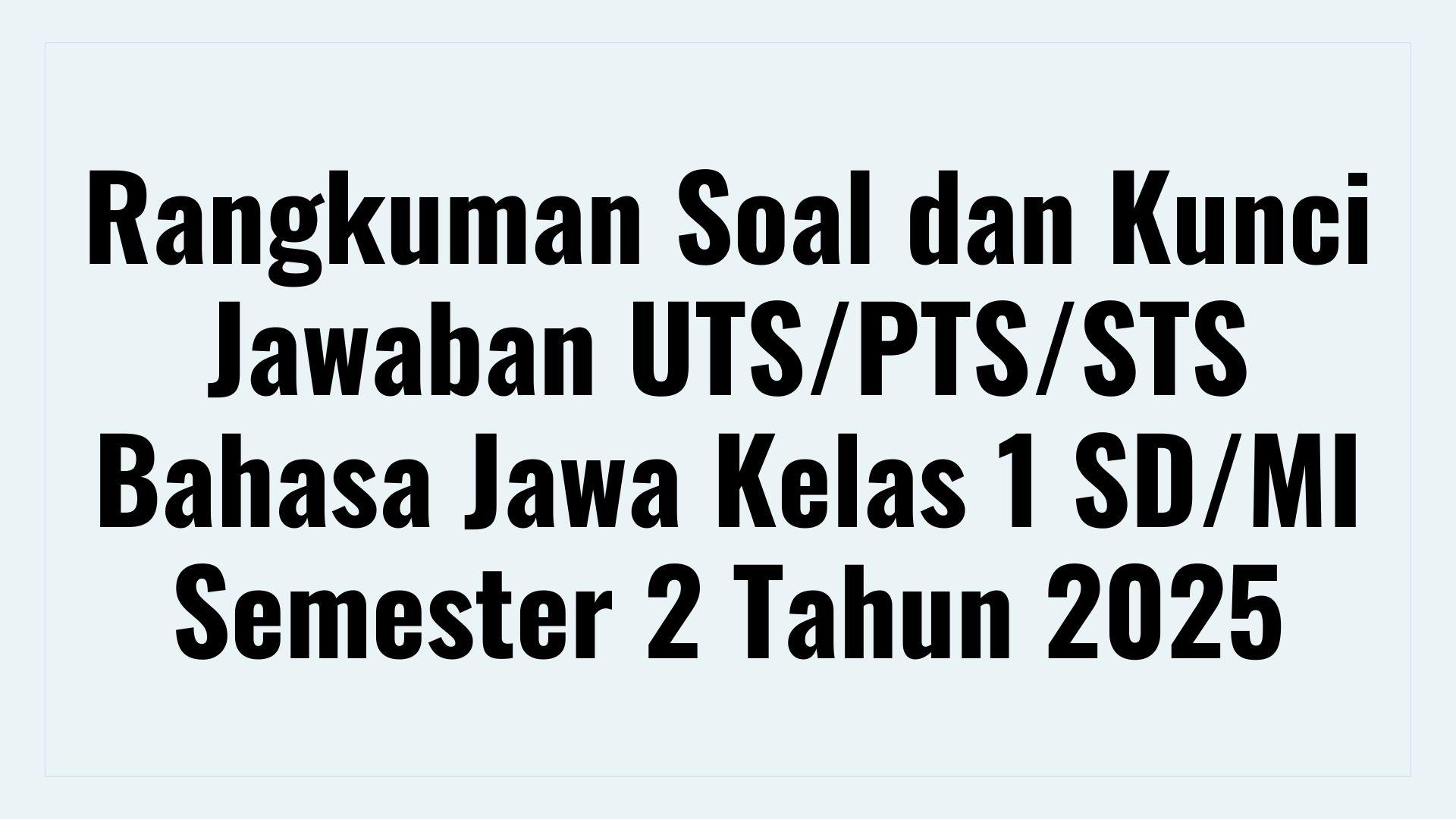 Rangkuman Soal dan Kunci Jawaban UTS/PTS/STS Bahasa Jawa Kelas 1 SD/MI Semester 2 Tahun 2025