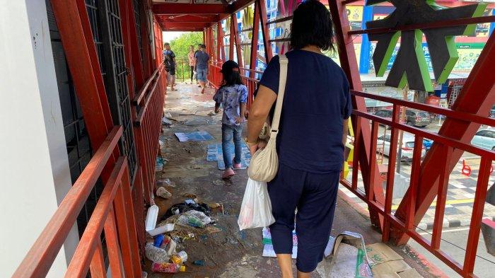 Pantauan pada Kamis (30/1/2025) banyaknya sampah berserakan di lantai jembatan.