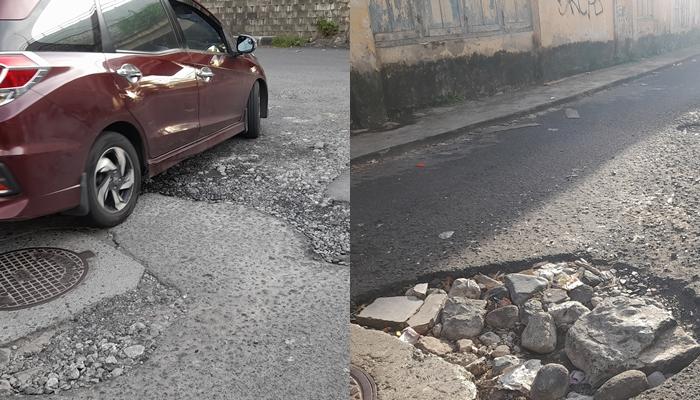 "Sudah lama ini jalan berlubang, kadang ada insiden juga. Ada yang saling bersenggolan karena menghindari lubang," kata Amat pedagang di sekitar lokasi.