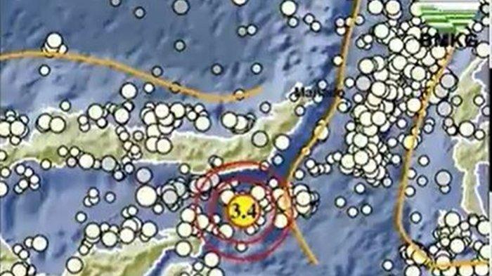Titik lokasinya ada di koordinat 0.31 lintang selatan, 124.10 bujur timur.