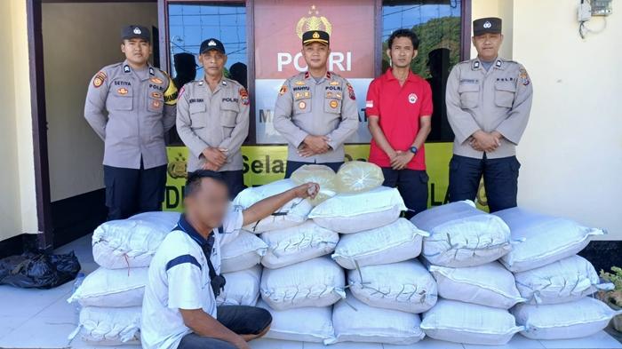 Kapolsek Sang Tombolang Ipda Wahyu Ismail menjelaskan kronologi penyitaan pengiriman ribuan liter cap tikus tersebut.