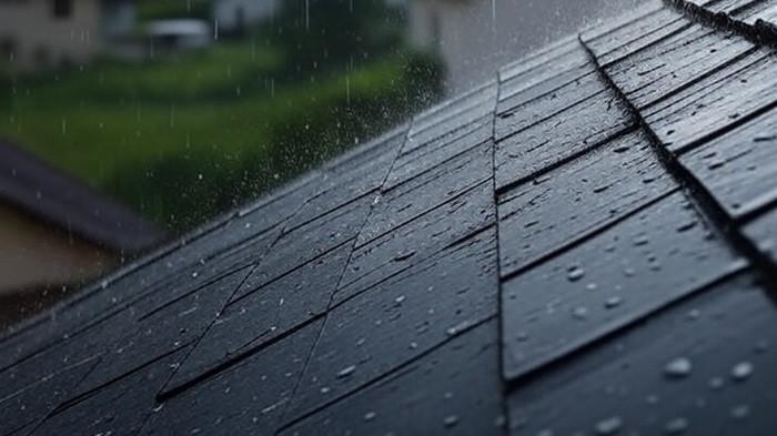 HUJAN: Gambar hujan membasahi genting rumah dari AI Grok X. Berdasarkan BMKG, seluruh wilayah Manado potensi hujan besok Senin 11 Agustus 2025.