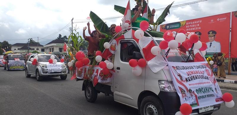 Wali Kota dan Wakil Wali Kota Kotamobagu Lepas Pawai Pembangunan HUT ke-80 RI