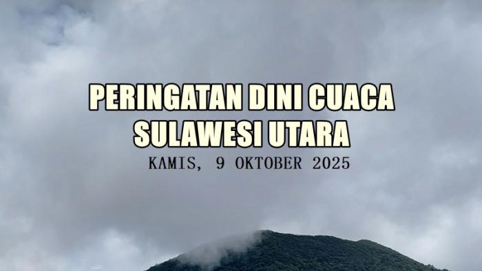 BMKG Sulawesi Utara (Sulut) mengeluarkan peringatan dini cuaca pada Kamis (9/10/2025), pukul 15.00 Wita.