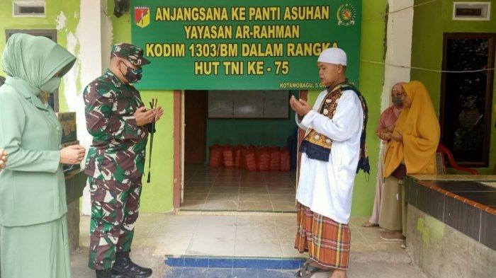 Dalam kegiatan tersebut Kodim 1303/Bolmong memberikan santunan kepada anak yatim piatu yang ada di panti asuhan tersebut.