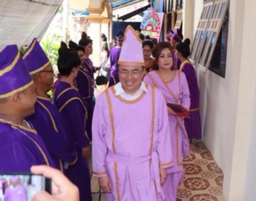 Sebelum masuk ke dalam lokasi, kedua orang ini menerima kalung bunga kemudian diiringi doa-doa suci yang diucapkan dalam bahasa Sangihe.