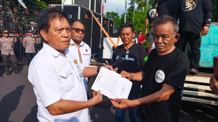 Aliansi Supir Dumptruck Sulawesi Utara menggelar aksi demonstrasi di depan Kantor Gubernur Sulut pada Senin (29/9/2025).