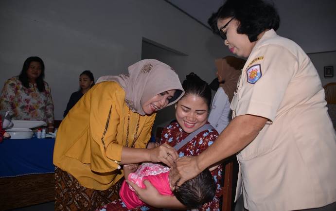 Tinjau Posyandu, Ketua Korcab VIII DJA II Teteskan Vitamin A ke Mulut Balita
