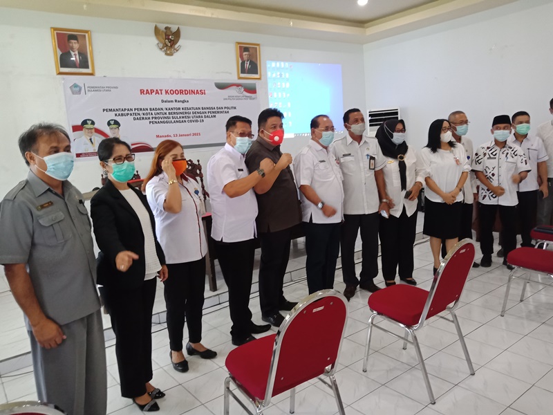 Pertemuan di Kantor Badan Kesbangpol Sulut ini digelar, Rabu (13/1/2021), dua hari jelang peluncuran program vaksinasi Covid 19 di Bumi Nyiur Melambai