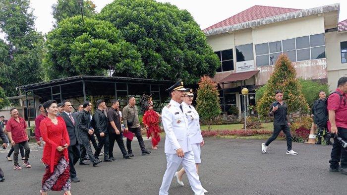 Wali Kota dan Wakil Wali Kota Tomohon, Caroll Senduk dan Sendy Rumajar, tiba di Gedung DPRD Kota Tomohon, Sulawesi Utara