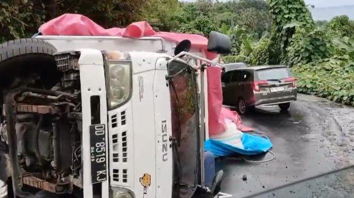 Breaking News: Kecelakaan di Tombariri Minahasa, Truk Terguling di Tengah Jalan