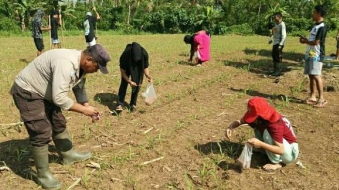 Aiptu Junaidy Bakary Dampingi Petani LPTI Talawaan Bantik Lakukan Pemupukan Jagung